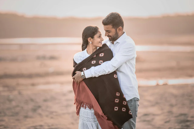 - Photo: Smiling man covering woman with blanket by CAMERA TREASURE @Pexels.